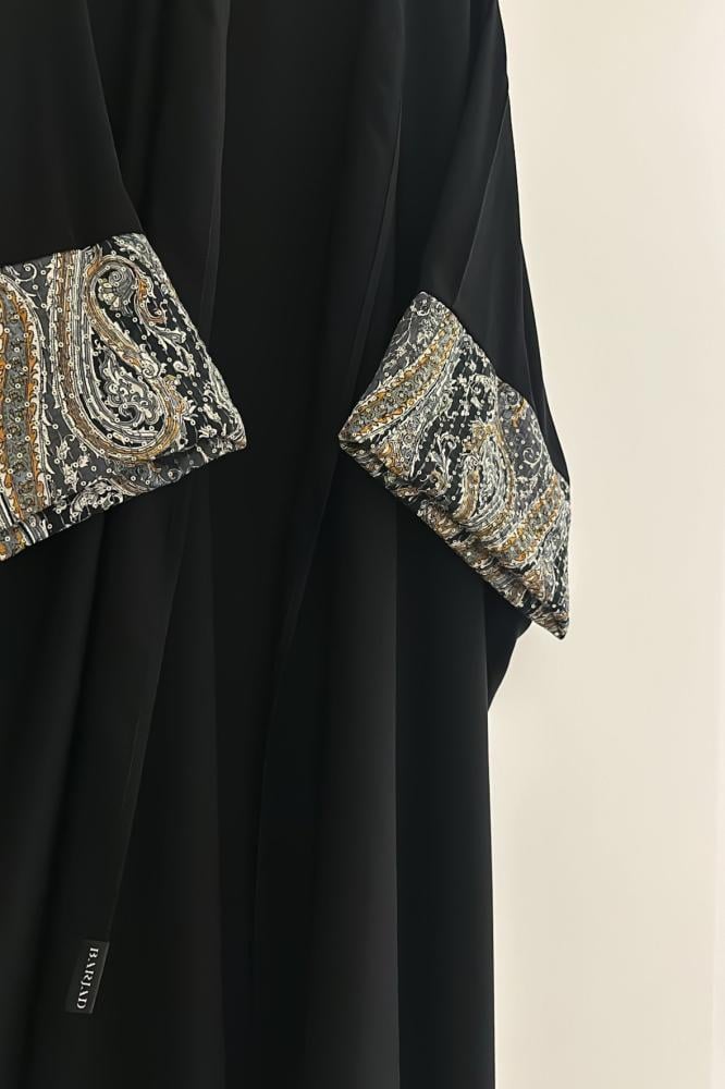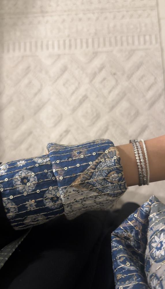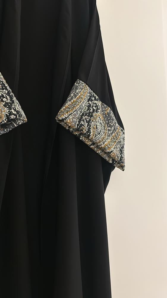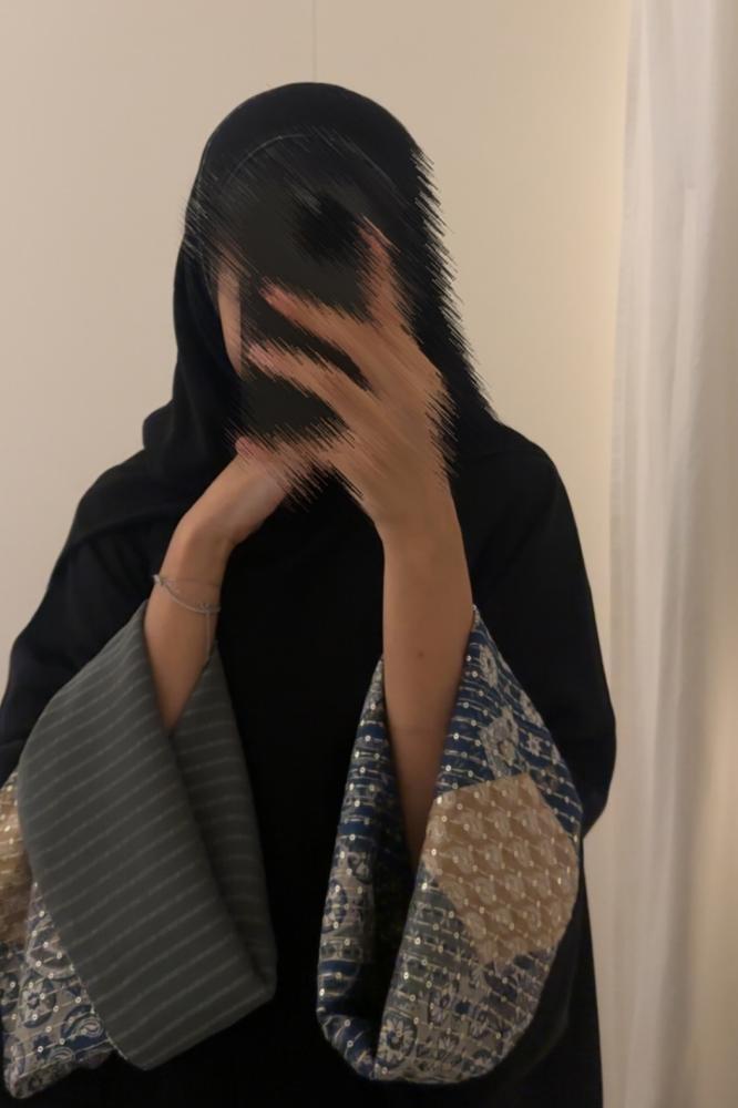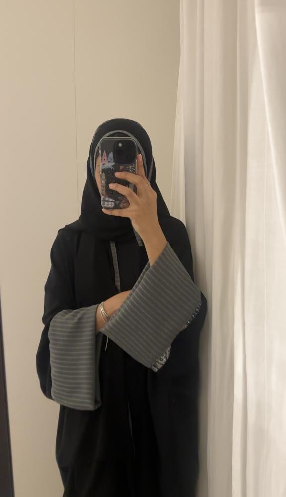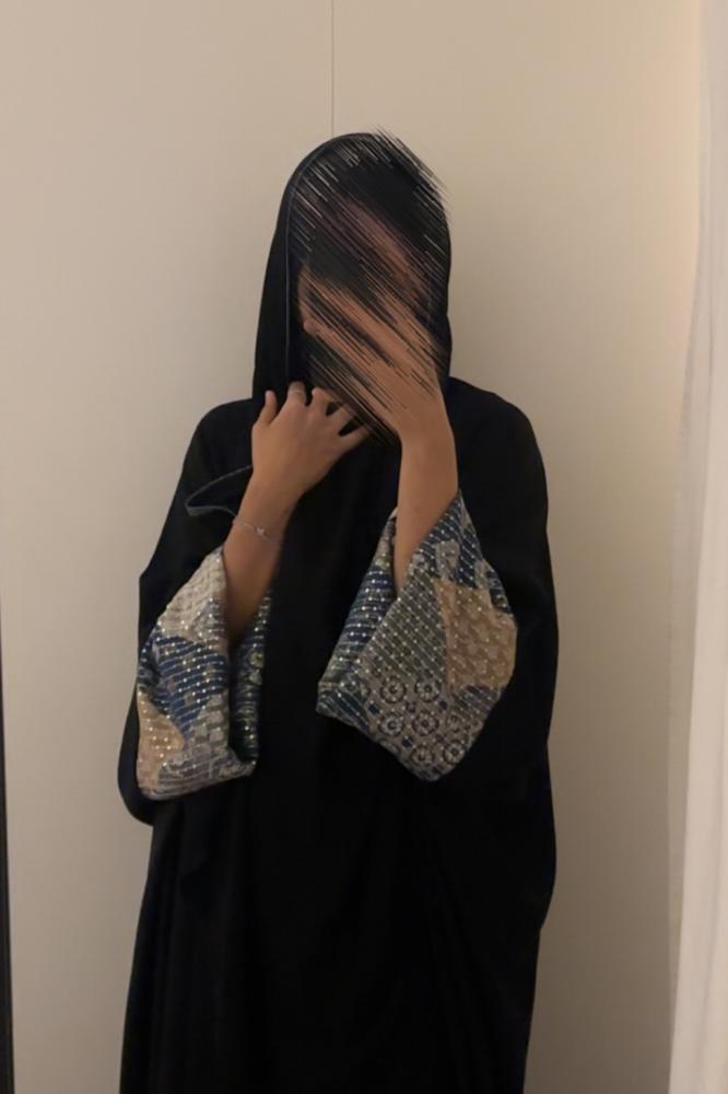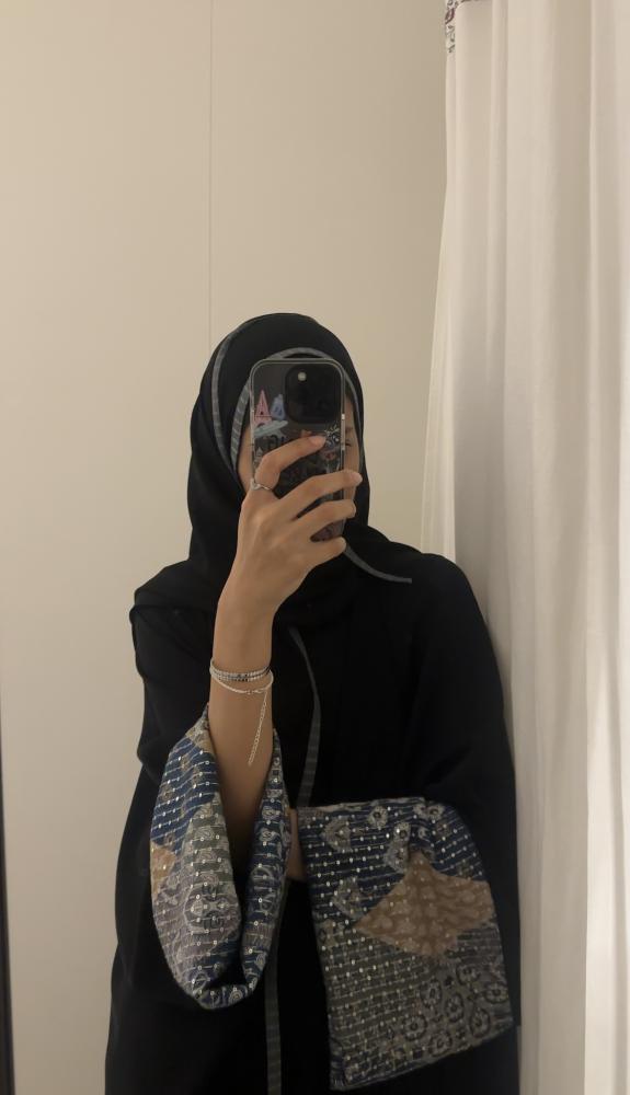 القماش:كريب بارد+الكم ازرق لما ينطبق على جوا ولما ينطبق على برا رمادي مخطط